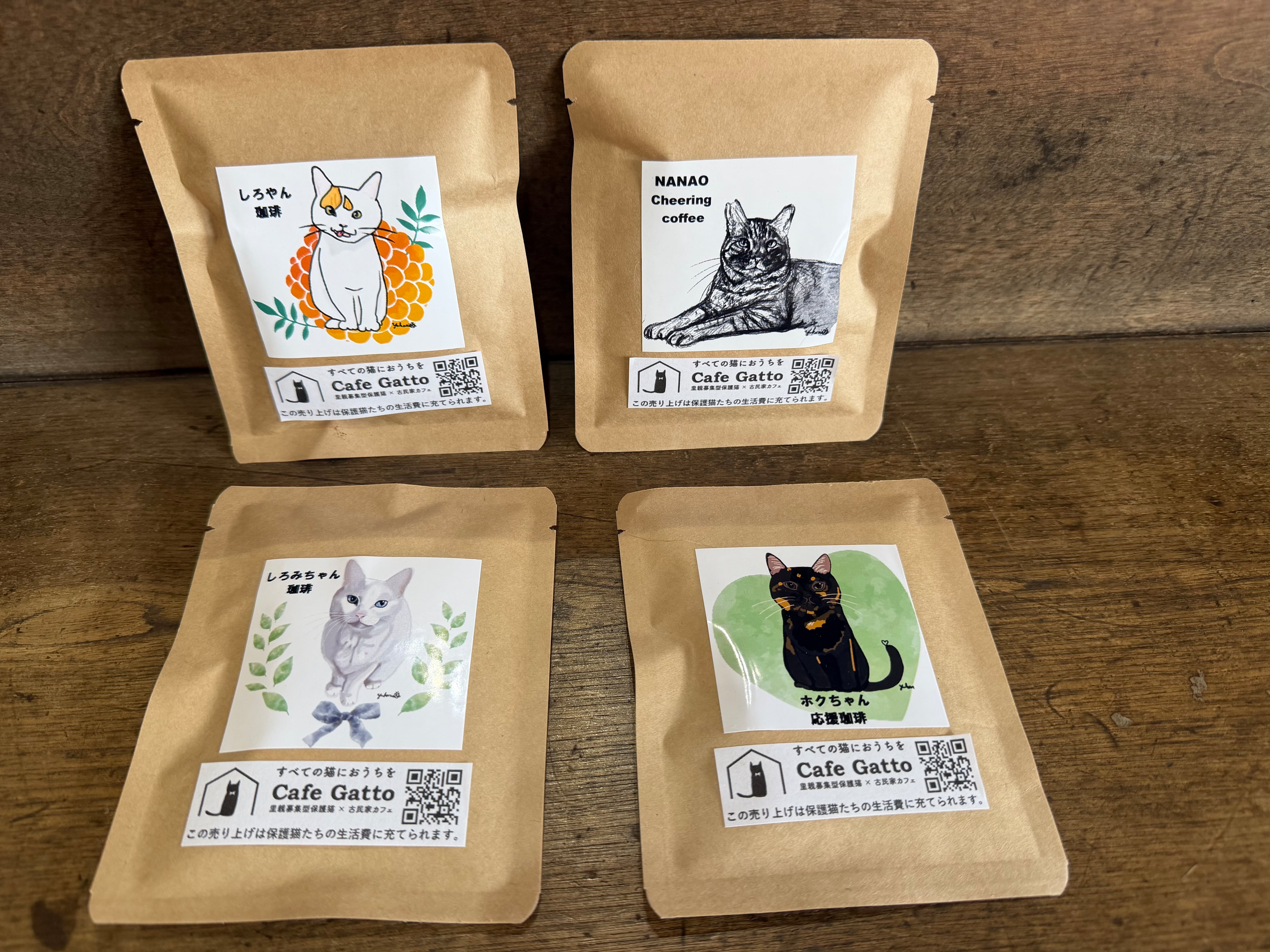 Cafe Gattoラベル ドリップ珈琲 医療費支援ラベル( ホクちゃん&クレア)